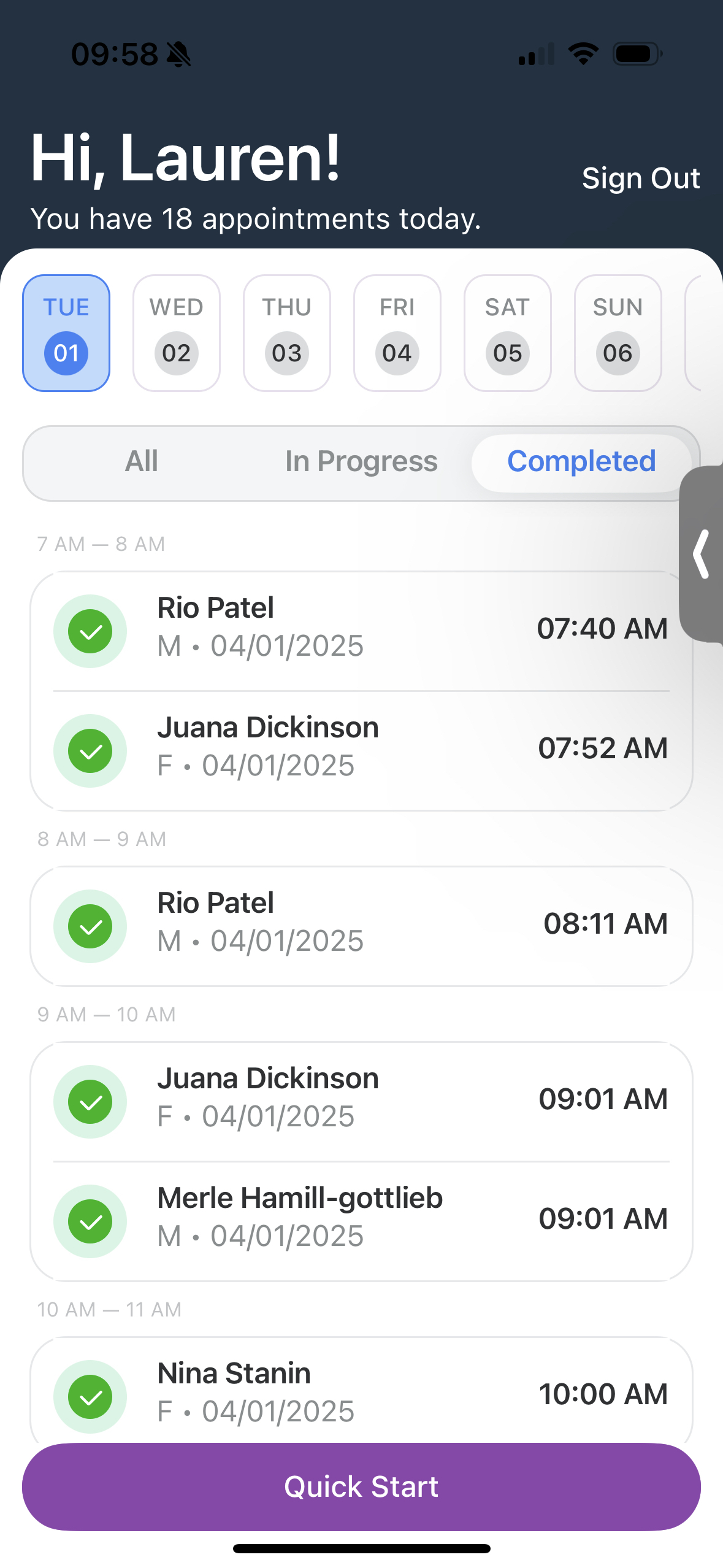 - NOTE: As an internal user, you’ll need to create your "test" appointments in the web application, which will automatically sync to your mobile app screen. Alternatively, you can generate a "test" appointment using QuickStart.