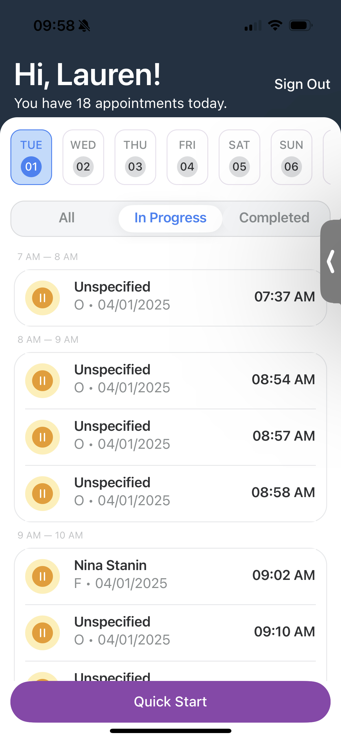 - Users can navigate between All Appointments, In Progress Appointments and Completed Appointments by selecting the appropriate tab.